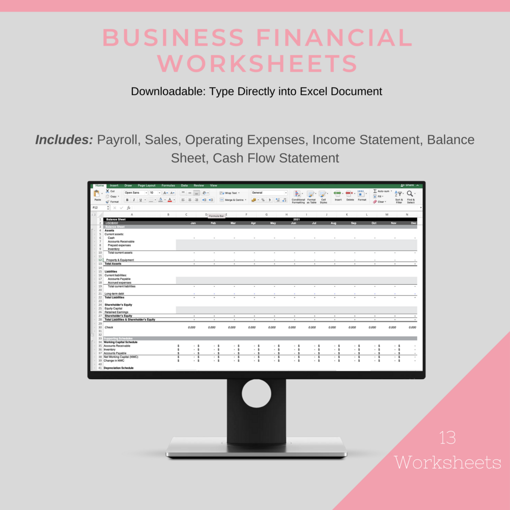 - Financial Worksheets - These excel worksheets are exactly what you need to get started with your financial goals and projections. Worksheets include Payroll, Sales, Operating Expenses, Income Statement, Balance Sheet, Cash Flow Statement.