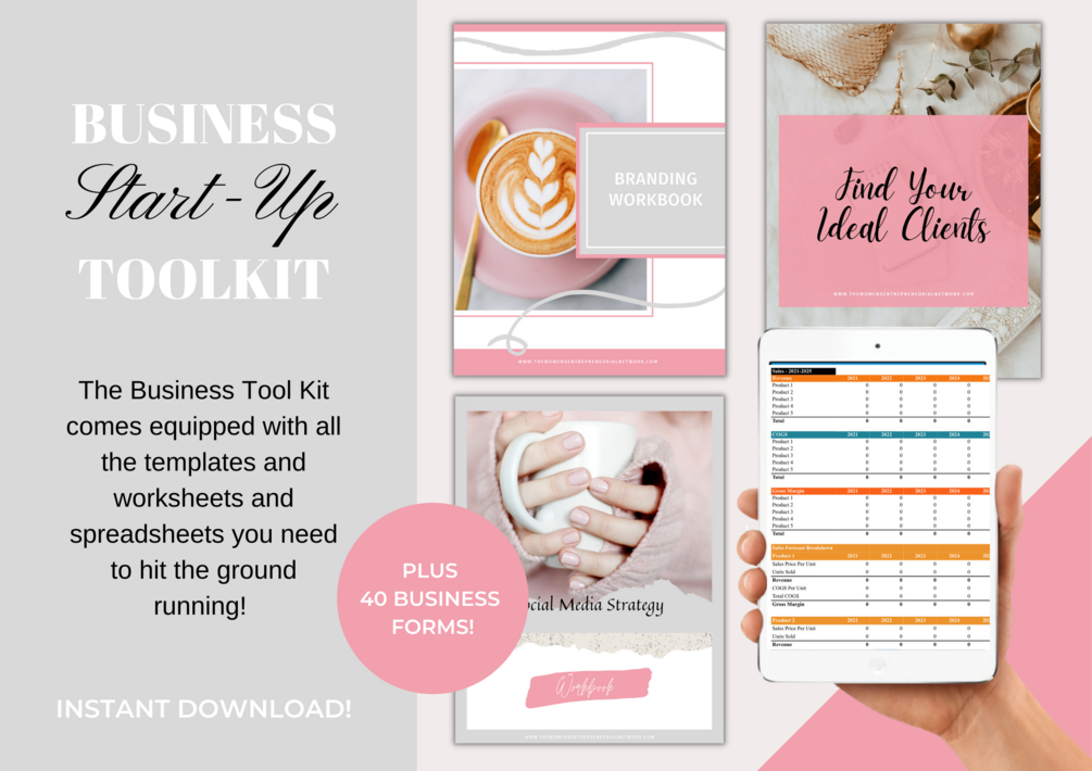 The Business Tool Kit comes equipped with the templates, worksheets and workbooks you need to hit the ground running and will help you beat some of the overwhelm that comes with starting out in business.
